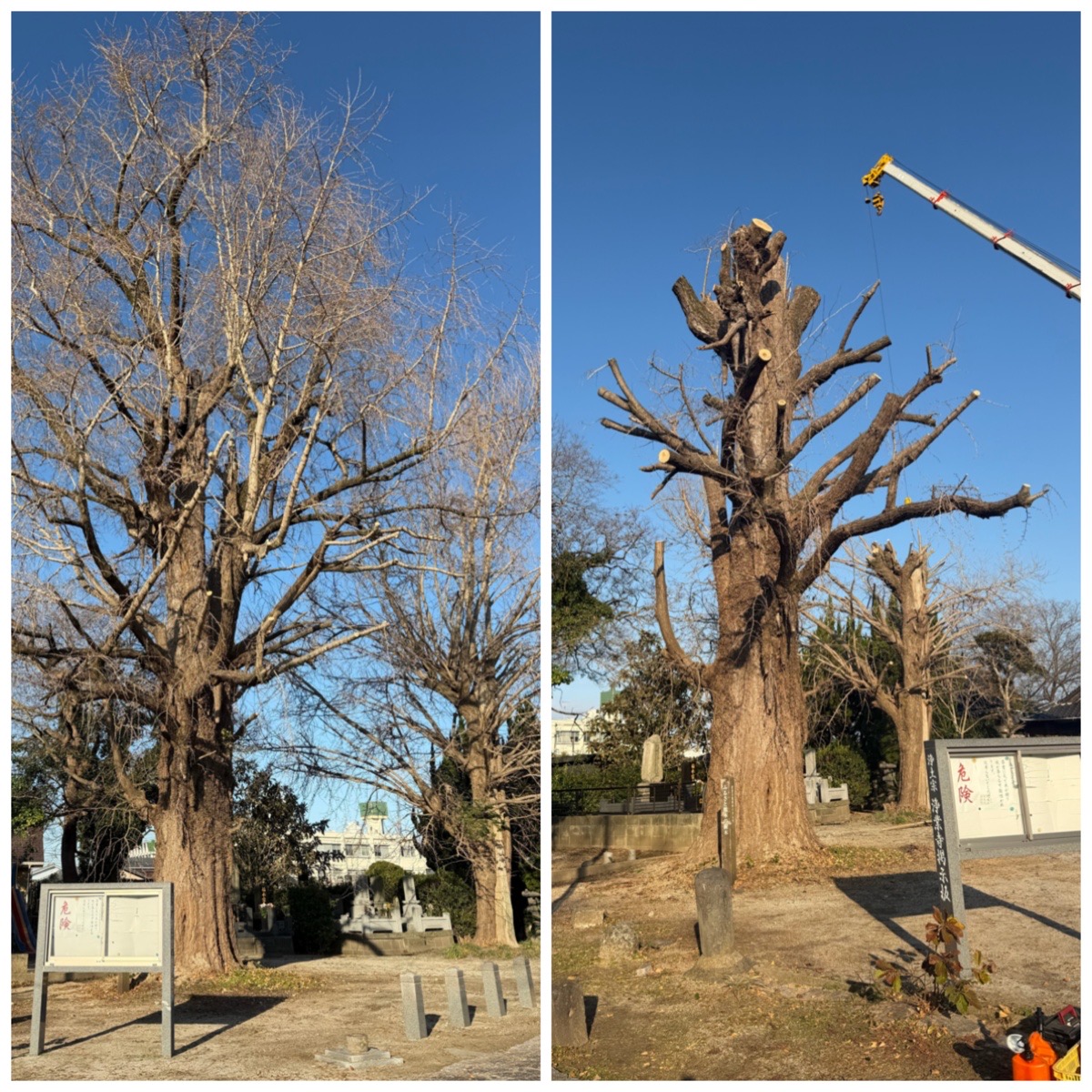 昨年末予定でお伝えしていたように、銀杏の枝の剪定を行いました。